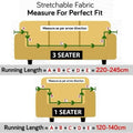 Made from polyester with 5% spandex for elasticity, the sofa cover fits standard 3 seat sofas with arms, having arm to arm running length range of 220-245cm (Please refer sizing image for clarity).